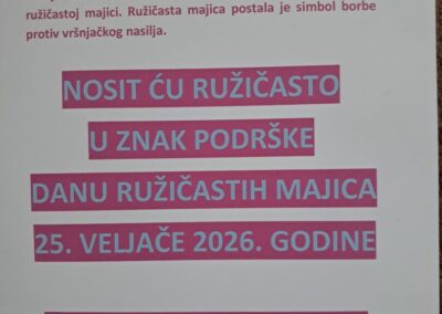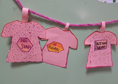 Osim nošenja ružičastih majica, u svim razredima provedene su edukativne aktivnosti usmjerene razvijanju međusobnog uvažavanja, prihvaćanja različitosti, empatije, odgovornog ponašanja i nenasilnog rješavanja sukoba u stvarnom i virtualnom svijetu.