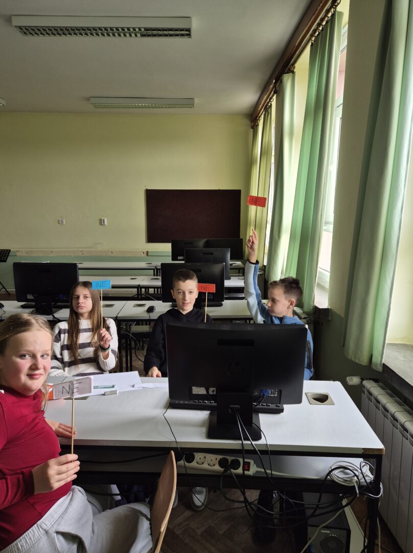 Tijekom radionice učenici su se upoznali s pojmovima sexting, grooming i sextortion. Učenici su bili podijeljeni u grupe, a svaka je grupa dobila jedan scenarij. Zadatak je bio iznijeti stav o tome kako bi postupili u određenim situacijama.